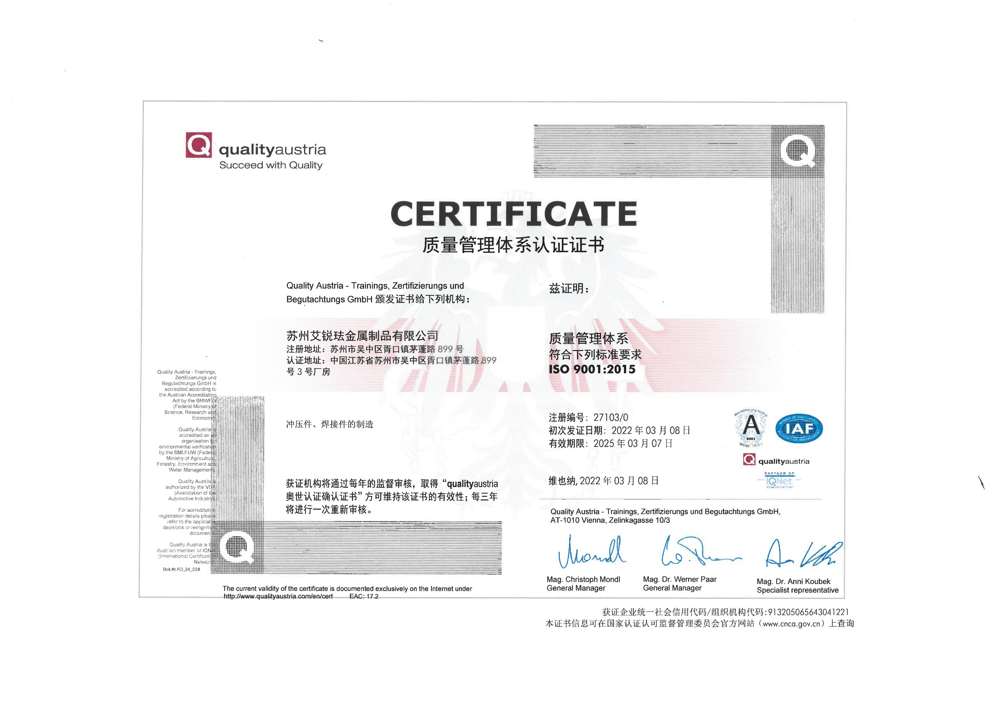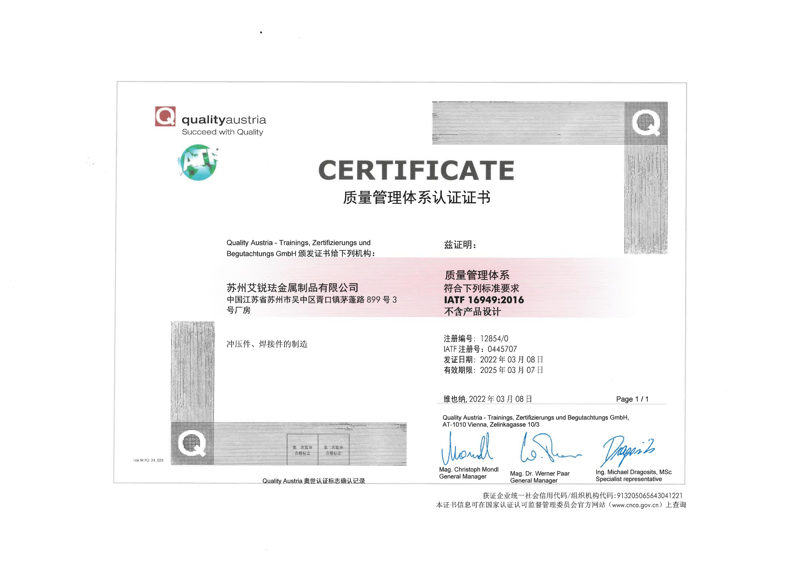 艾銳琺公司以技術(shù)為核心,向客戶提供優(yōu)質(zhì)的產(chǎn)品、準(zhǔn)時(shí)的交期、合理的價(jià)格、優(yōu)質(zhì)的服務(wù)從各方面不斷開拓進(jìn)取,服務(wù)于客戶,公司實(shí)行ISO9001&IATF16949質(zhì)量保證體系,致力于打造國(guó)內(nèi)一流的精密鈑金制造公司。